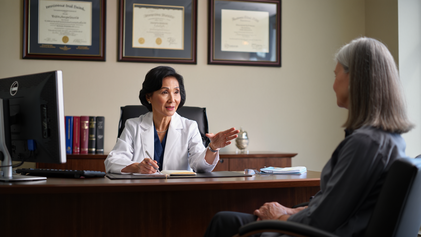 An elegant woman in her 50s was talking to Dr. Sarah Chen, one of Beverly Hills' most respected anti-aging specialists.